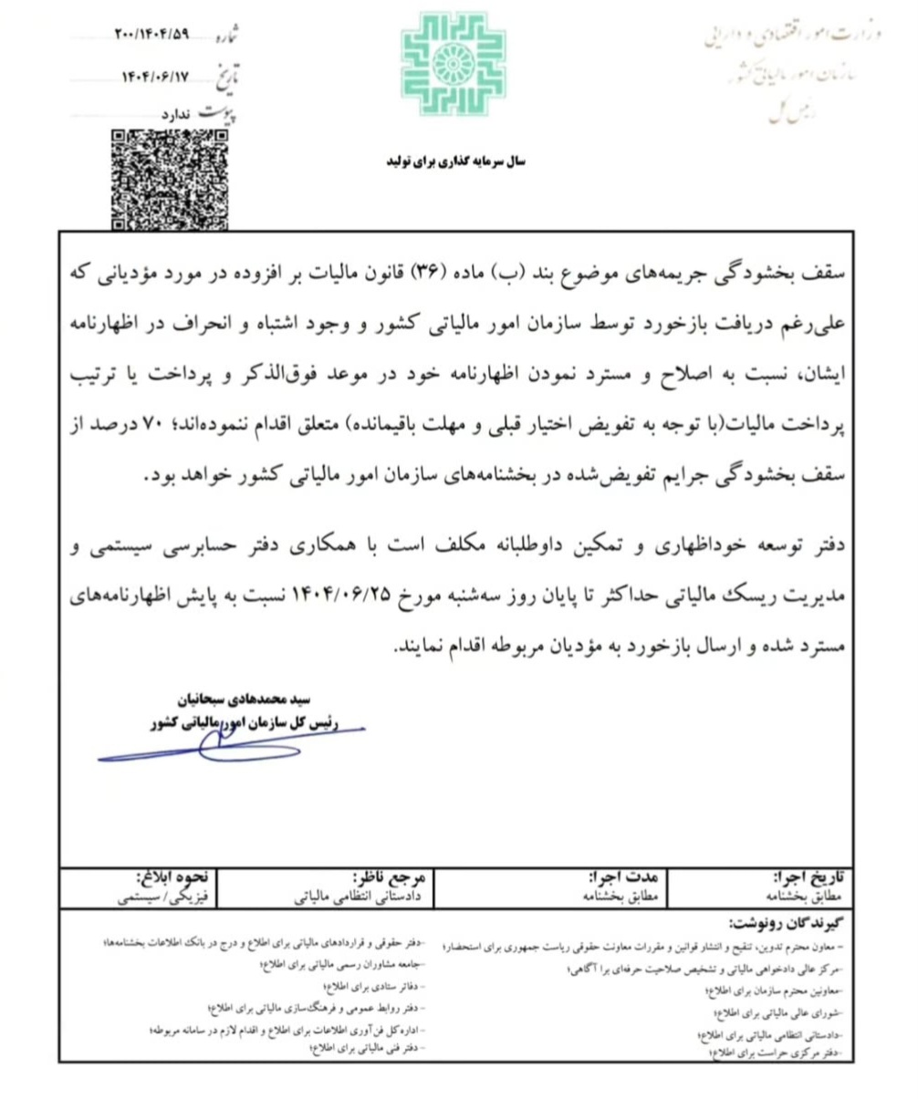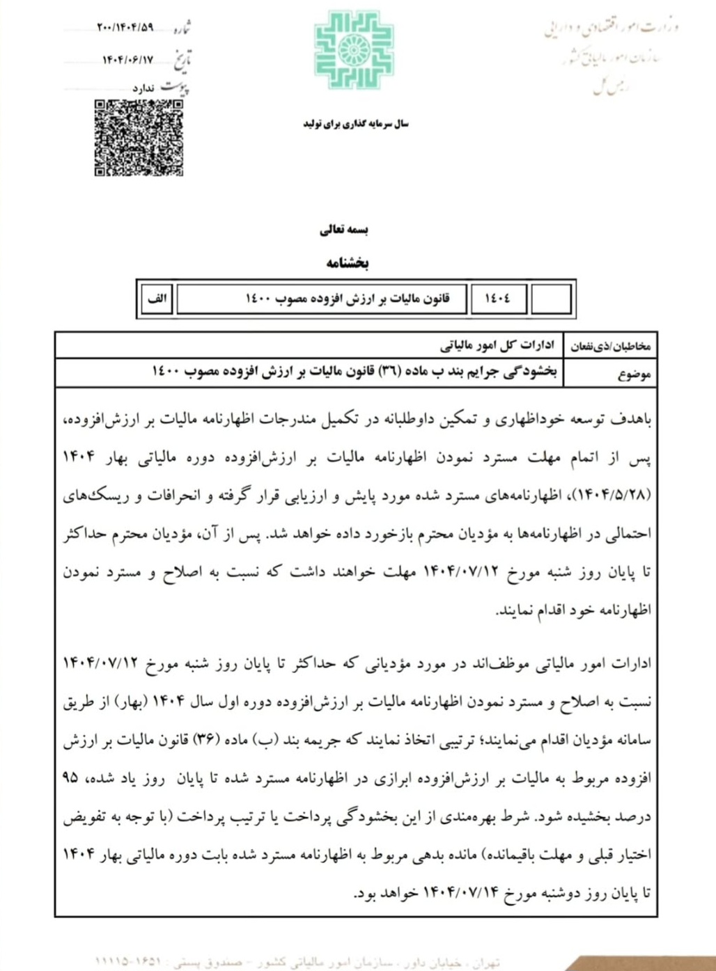 بخشنامه امکان اصلاح اظهارنامه ارزش افزوده بهار 1404 و شرایط بخشودگی جرائم آن