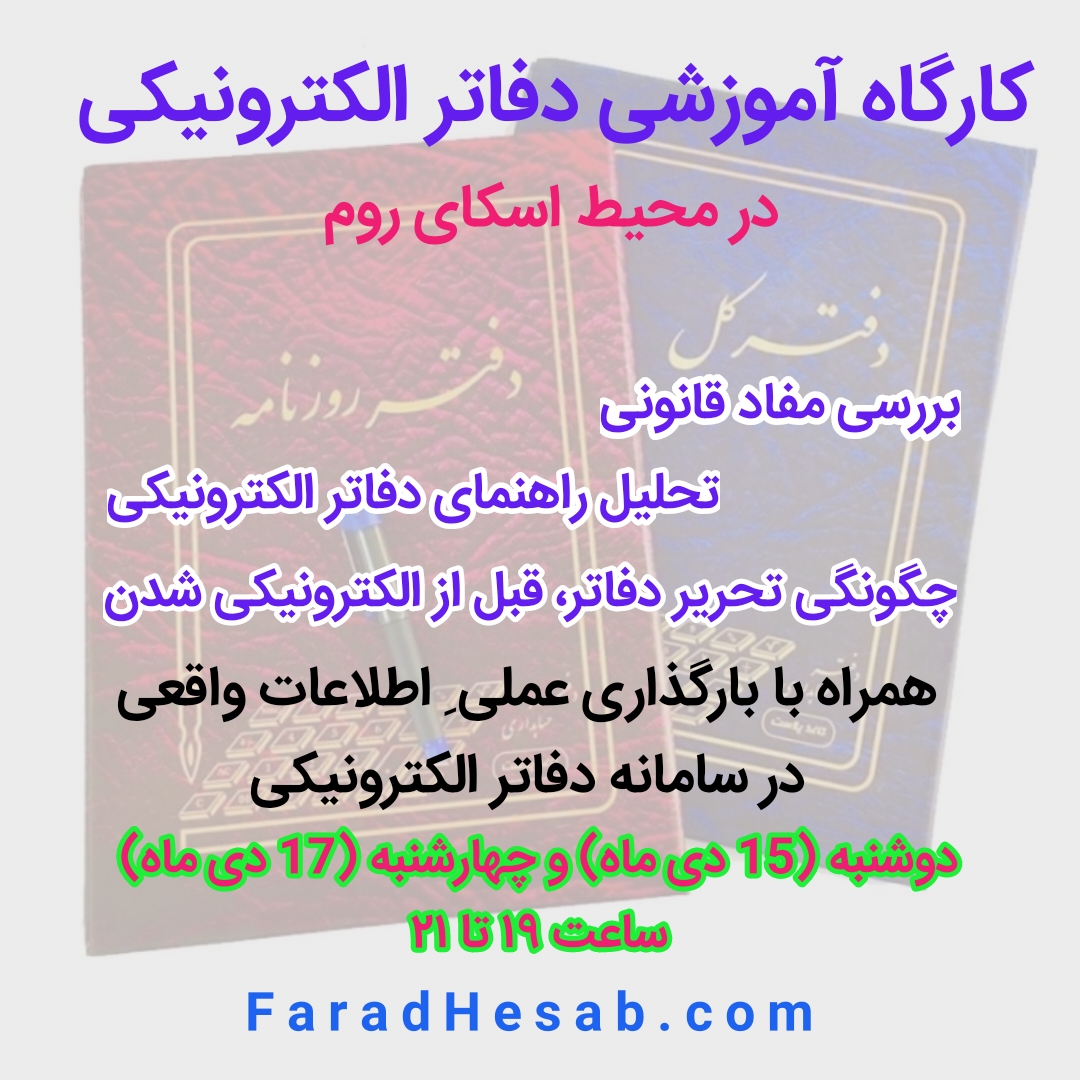 با توجه به حذف دفاتر فیزیکی و انجام تکلیف قانونی مرتبط با بارگذاریِ اطلاعات دفاتر در سامانه الکترونیکی و مهمتر از همه، مهلت بارگذاری اطلاعات 6 ماهه ابتداییِ سال 1404 در سامانه مذکور تا پایان دی 1404، شرکت در این کارگاه بهشدت پیشنهاد میگردد.